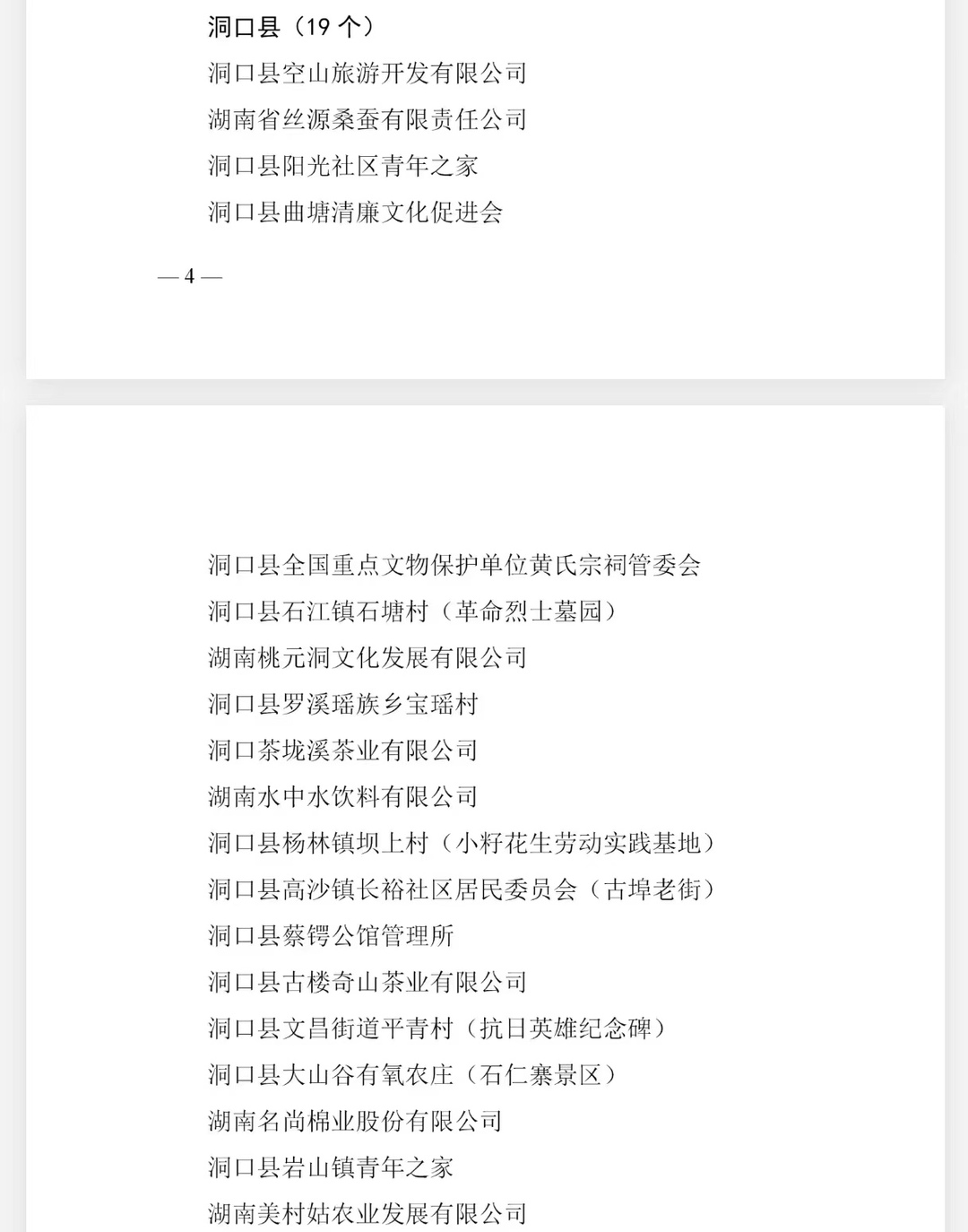 据了解,该名单是经单位自主申报、县市区审核推荐、市级综合评定后优选出来的。入选各单位在丰富少年儿童课后生活的同时,不断拓展实践活动项目和载体,服务少年儿童健康成长。洞口县本次入选邵阳市第二批少先队校外实践教育营地(基地)的单位有洞口县全国重点文物保护单位黄氏宗祠管委会、洞口县石江镇石塘村(革命烈士墓园)、洞口县蔡锷公馆管理所、洞口县文昌街道平青村(抗日英雄纪念碑)等19家。