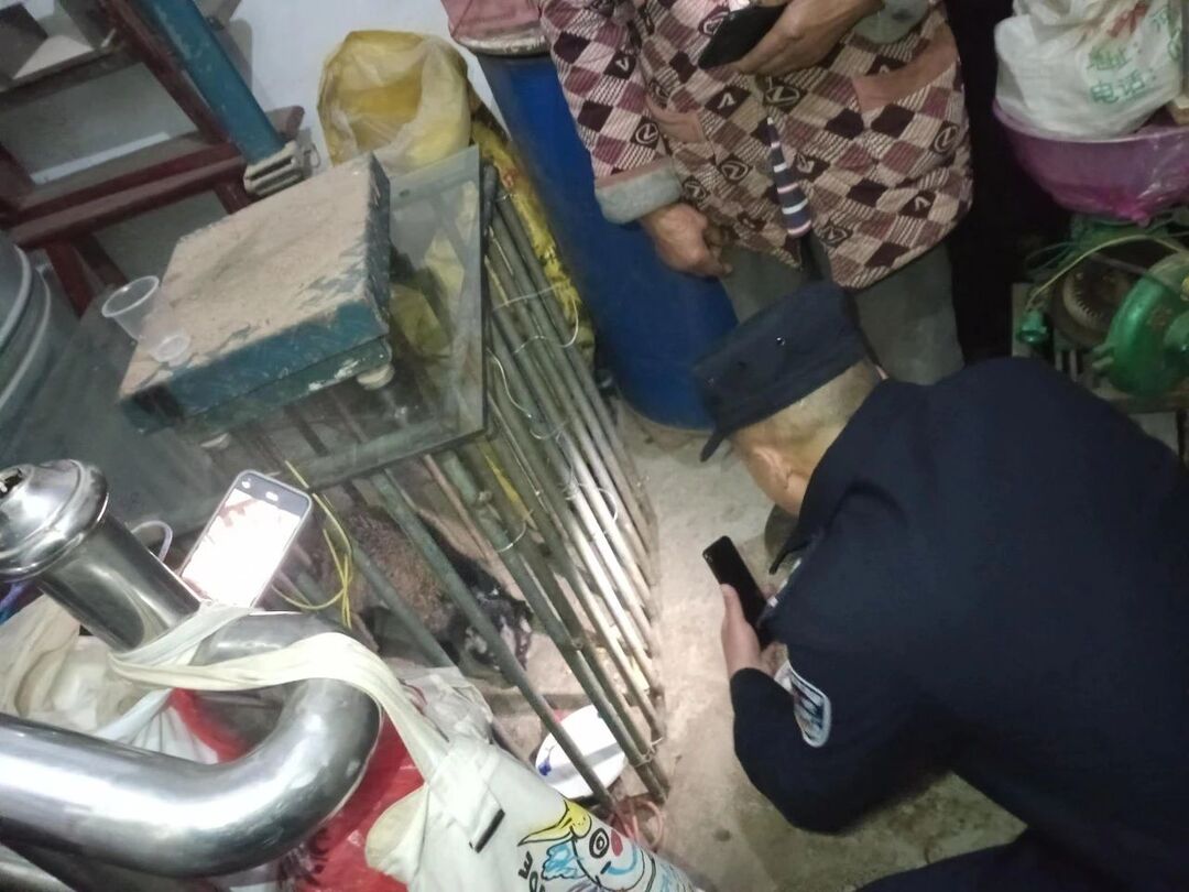 杨恢朴介绍:“我女儿家里在大水,做工(的时候)发现一个奇怪的动物,受伤了的,就把它带回来,放到家里面,我的孙子就告诉我,用手机查了是二级保护动物,我就打了高沙派出所的电话。”