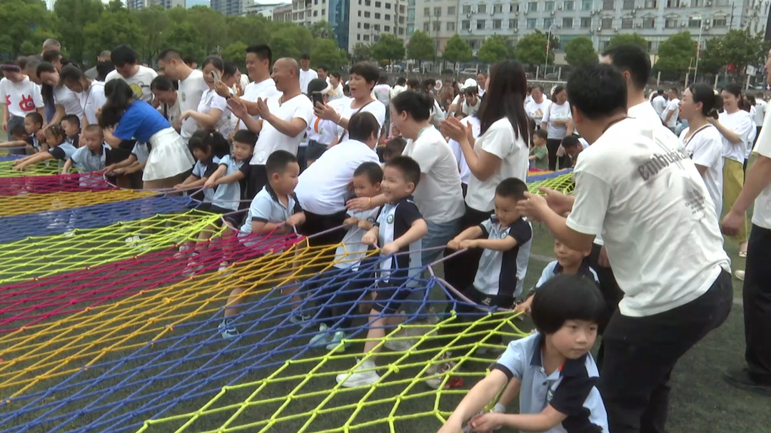 新洞口客户端5月29日讯(记者:向五君)5月29日,县幼儿园携手“洞口爱心妈妈”在洞口一中足球场举行庆“六一”亲子趣味运动会。