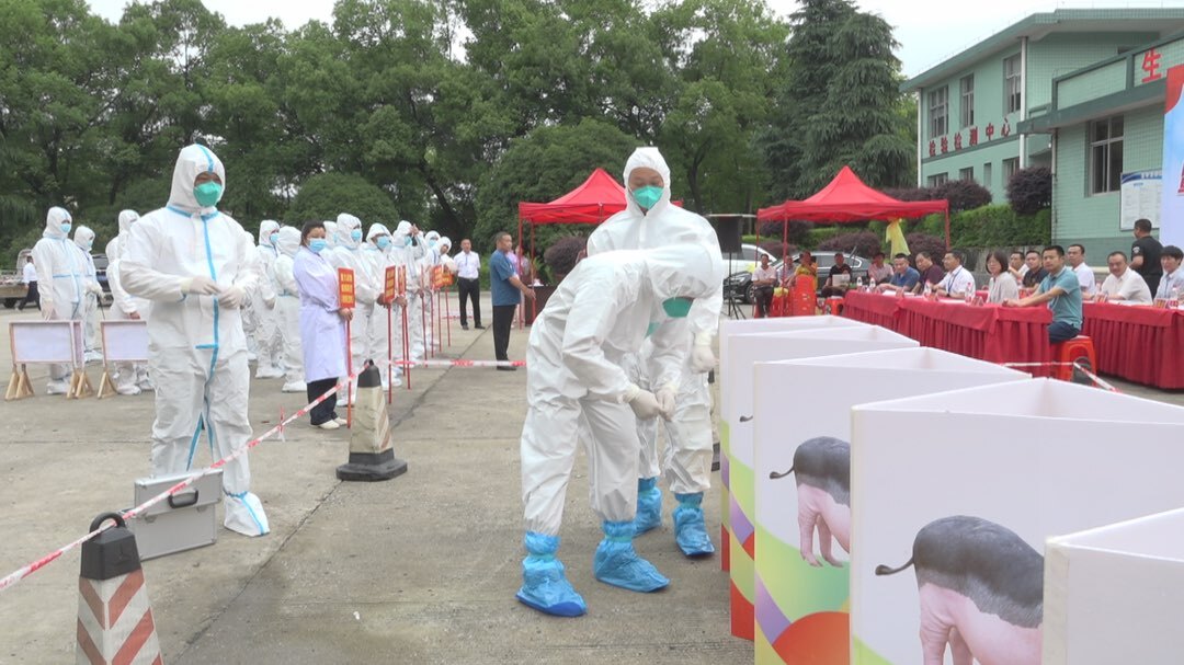 科目一模拟某屠宰场报告发现1例疑似非洲猪瘟染疫生猪,县重大动物疫病防控指挥部接到疫情报告后,迅速启动非洲猪瘟疫情应急处置预案,有效处置了模拟非洲猪瘟疫情。