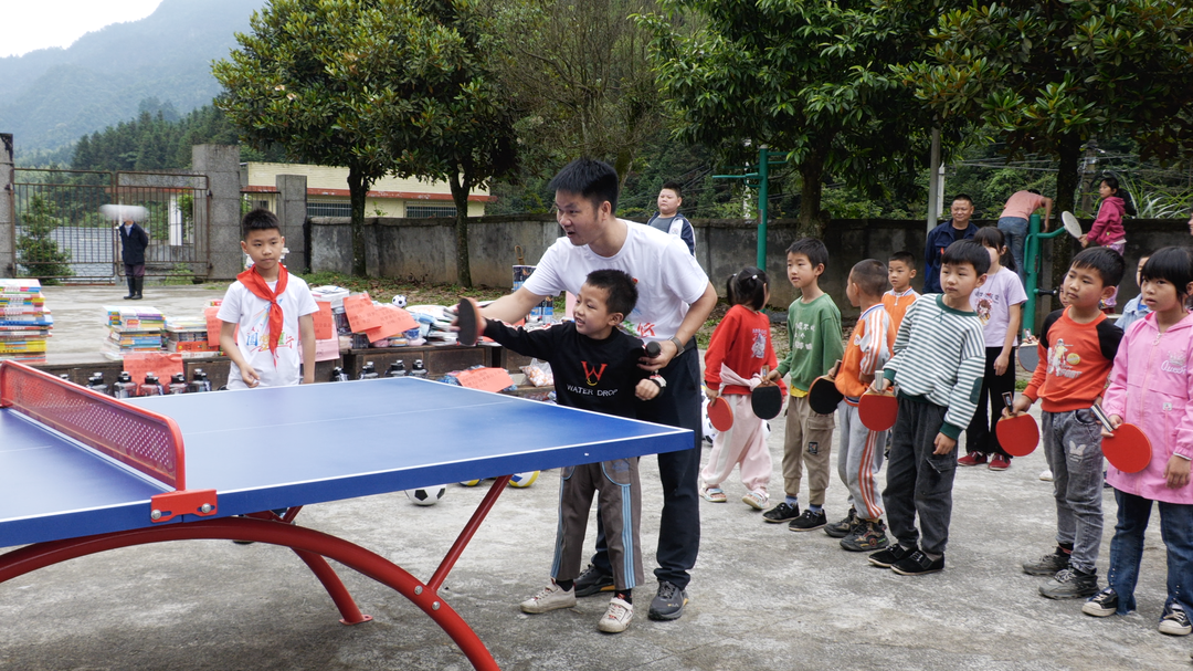 伴随着嘹亮的国歌声,助学活动正式拉开帷幕。志愿者们以精彩的歌曲、舞蹈、武术表演,迅速拉进了与孩子们的距离。接着,志愿者为孩子们送上运动器材、学习用品、生活用品等爱心物资,并现场开展乒乓球、武术教学,孩子们积极参与、认真学习,在欢乐的氛围中度过一个难忘的节日。