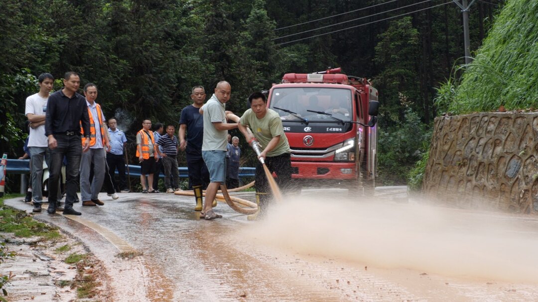 6月18日,在洞口县平溪江至古楼公路沿线,洞口县公路建设养护中心工作人员正有序开展排险抢通作业。
