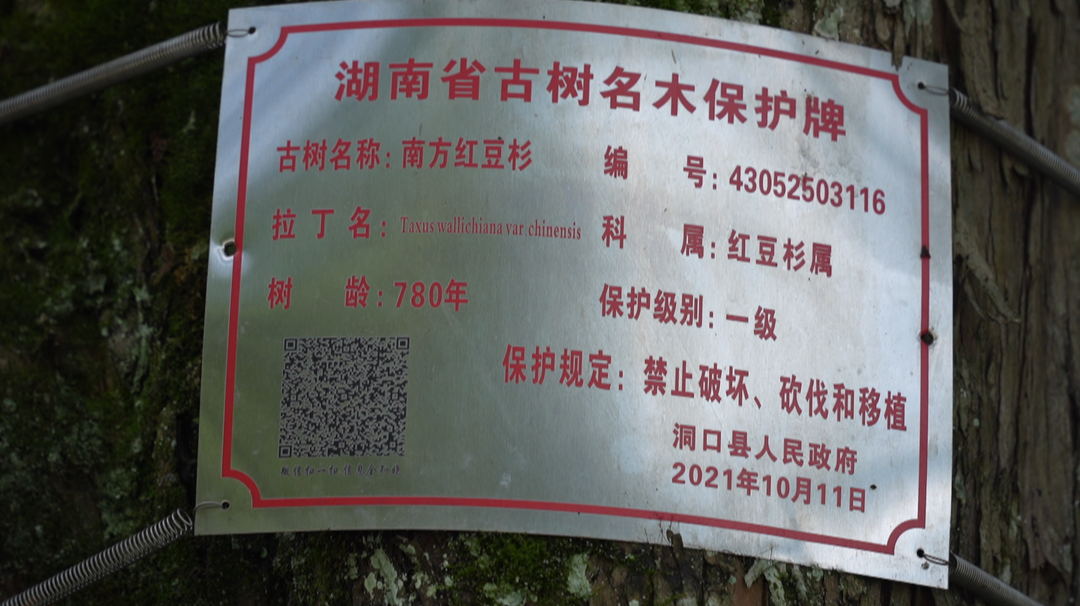 新洞口客户端7月5日讯(记者:肖皓静 王周鹏)7月5日,记者在月溪镇管竹村看到两棵国家一级保护植物——“中国红豆杉”。据当地村民介绍,这两棵红豆杉树龄均在780年以上,树冠巨大生长良好,堪称“千年红豆杉王”。