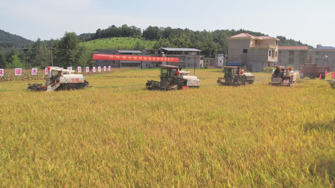 新洞口客户端7月25日讯(记者:欧阳沐娟 姜珂)当前正值水稻收获时期,7月25日,杨林镇在山下村举办水稻机收减损演示活动,为粮食增产稳产“保驾护航”。