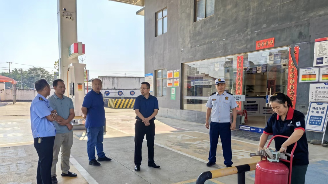 罗颢一行先后来到高沙镇某加油站与两个烟花爆竹销售网点,通过实地检查、听取汇报、现场问询等方式,详细了解烟花爆竹销售、消防安全管理、安全防范落实和加油站消防设施配备、应急演练、安全生产制度落实等情况。
