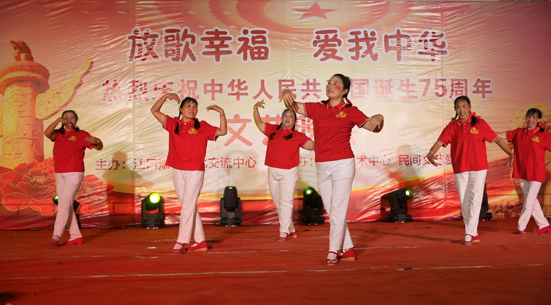 新洞口客户端10月2日讯(记者:肖皓静 通讯员:肖桥墩)在庆祝新中国七十五周年华诞的光辉时刻,江口镇以一场精彩纷呈的文艺汇演,向伟大祖国献上最诚挚的祝福。10月1日晚,由江口镇文化交流中心主办,天音艺术中心、民间文艺爱好者协办的“放歌幸福 爱我中华”文艺汇演精彩开幕。