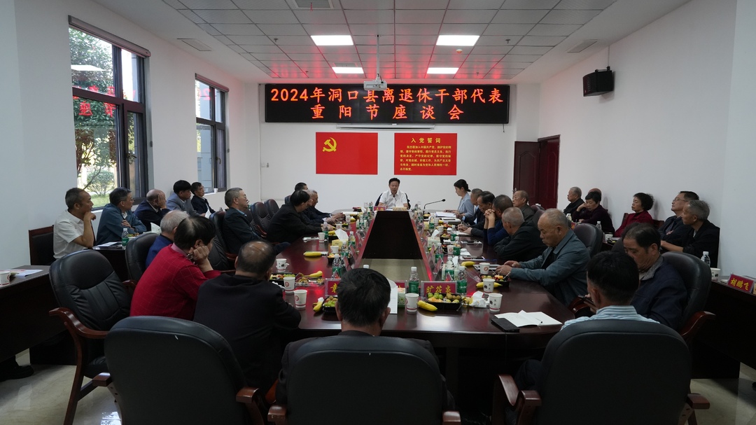 新洞口客户端10月9日讯(记者:薛源)10月9日,洞口县举行离退休干部代表重阳节座谈会,县委书记吴韬,县委副书记、统战部部长郭向荣,县委常委、副县长张纲学与离退休干部代表们齐聚一堂,共庆重阳佳节,共话洞口发展。