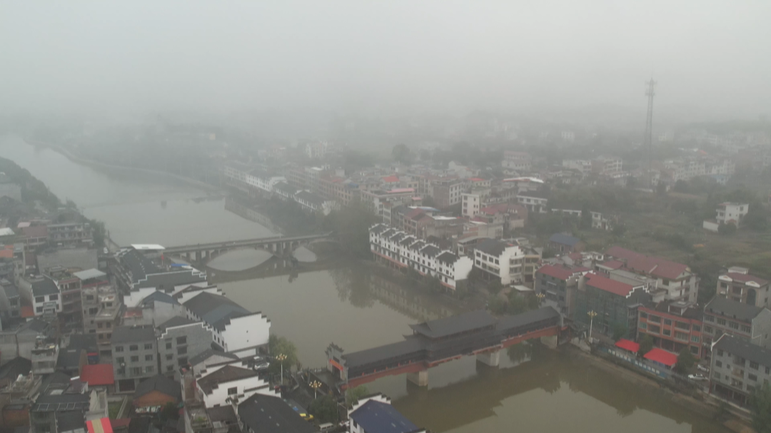 雨后蓼水河蜿蜒的身姿被升腾的薄雾笼罩,远处的青山若隐若现。水雾与横跨的风雨桥、云峰塔以及江畔静谧的古镇相融相交,给古镇平添了几分烟雨水乡的气息,也多了一份神秘感。