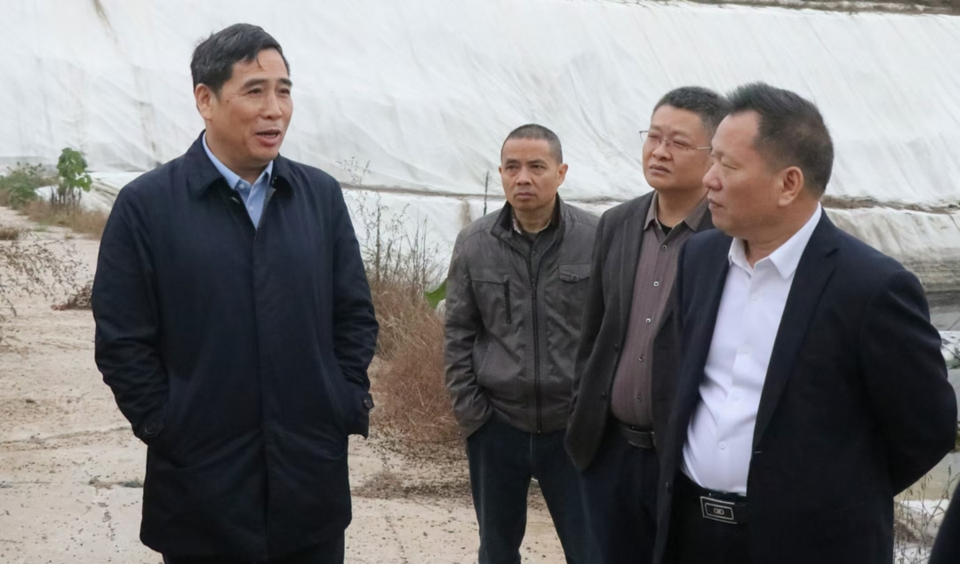 在高沙镇茶铺灰飞填埋场修复点,伍先明实地查看了灰飞填埋场修复工程建设现场,听取相关负责人的情况汇报,详细了解修复工程具体情况。