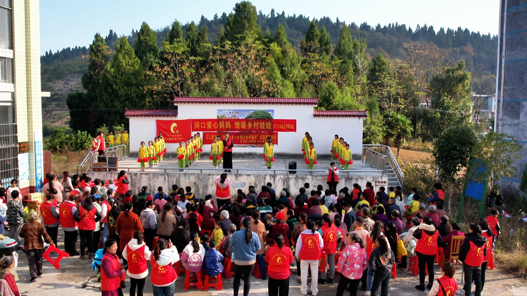 活动中,石江镇小天鹅学校的学生们表演了《啦啦操》、舞蹈《梦想家》等精彩的节目。洞口爱心妈妈们与孩子们通过共同参与两人三足、套圈、拔河等互动环节,进一步拉近心与心之间的距离。