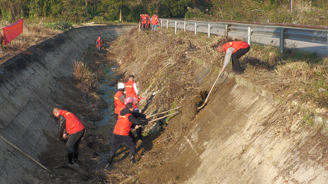 在洞口县蓼水灌区红岩总干渠毓兰镇梅田村段,灌区工作人员和志愿者分工协作,有的徒手搬运渠道落石、有的用铁锹铲除淤泥、有的忙于清理杂草和树枝,在大家齐心协力、默契配合下,克服渠道地形复杂、作业环境恶劣等困难,有效改善了渠道淤堵现象。