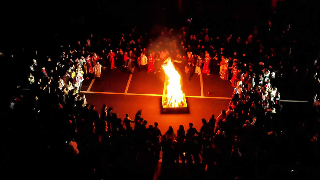 当天晚上8点,一束束烟花升腾而起,竞相绽放,有如鲜花怒放,又似流星飞呈,五彩斑斓的光影,辉映了景区迎接元旦佳节到来的喜庆的氛围。游客和群众们架起篝火,随着音乐载歌载舞,将现场气氛不断推向高潮。
