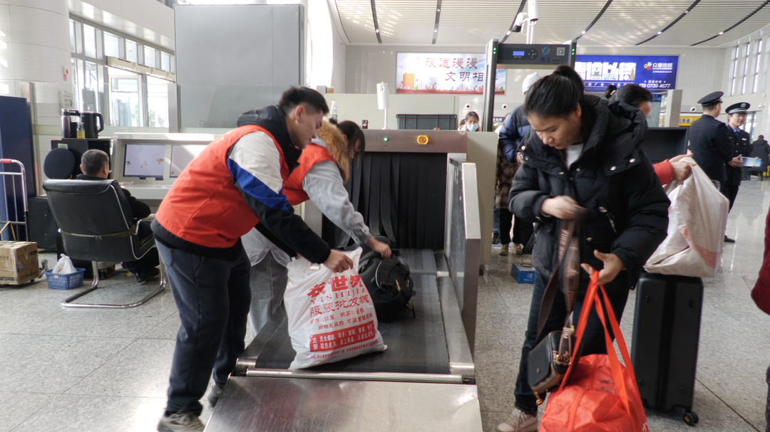 春运期间,经过培训的320名青年志愿者分组在洞口高铁站安检区域、检票口、电梯处、售票厅、出站口等关键位置,开展信息咨询、客流引导、旅客帮扶、秩序维护等暖心服务,同时进行站车文明宣传,引导广大旅客争做文明出行践行者,营造共建文明、共享文明的良好氛围。