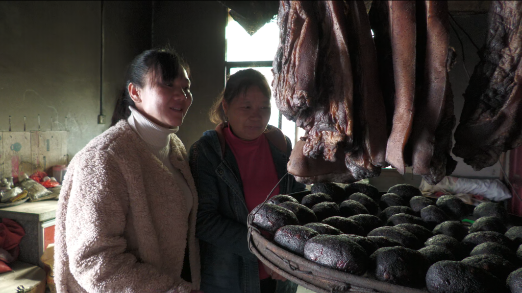 “这些农产品都是我们自己做的,自己吃不了这么多,通过徐姐的直播间帮我们变成现钱,大家都很开心,在家务农也更有积极性。”村民李贞菊翻看腊肉后,满脸笑容说道。