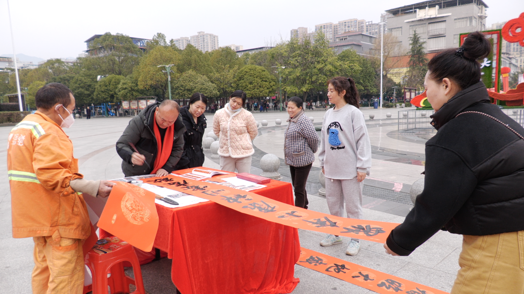 另一边的长桌上,笔墨铺就,“金蛇狂舞迎新纪,瑞雪纷飞兆好年”“蛇衔福字报春至,燕剪新枝入画来”,20余名书法家笔走龙蛇,将对家国平安、事业有成、身体健康的深深新年祝福融入了字里行间。活动共计送出福字、春联1400余幅,惠及群众上千人。