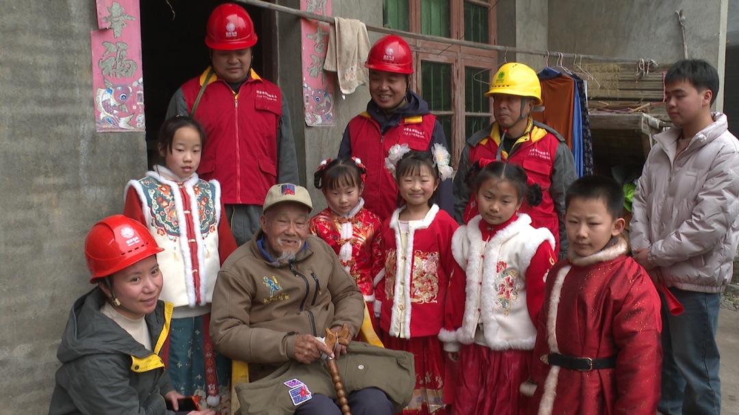 在周光元家中,工作人员为他送上米、油、水果等慰问品,与老人亲切交谈,一起贴春联,了解老人的身体状况和年货准备情况,并为老人检修了家中输电线路,特别对烤火器线路进行了重点检查,保证老人温暖安全过大年。