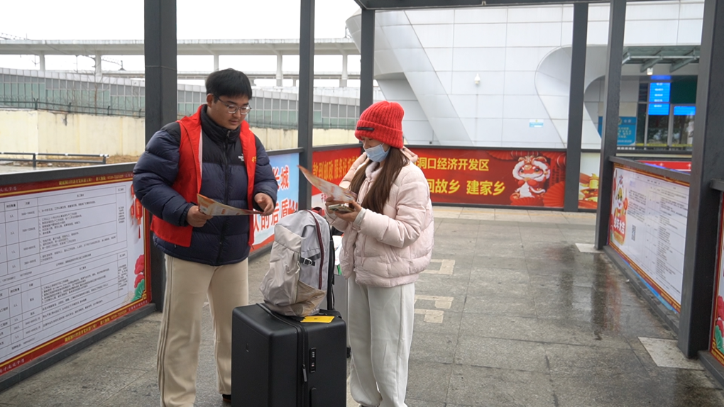 新洞口客户端1月25日(记者:江京晟 通讯员:杨芳丽)1月25日,中国邮政洞口县分公司联合县人社局在洞口高铁站开展“湘融湘爱 就业邮情温暖回家路公益活动。