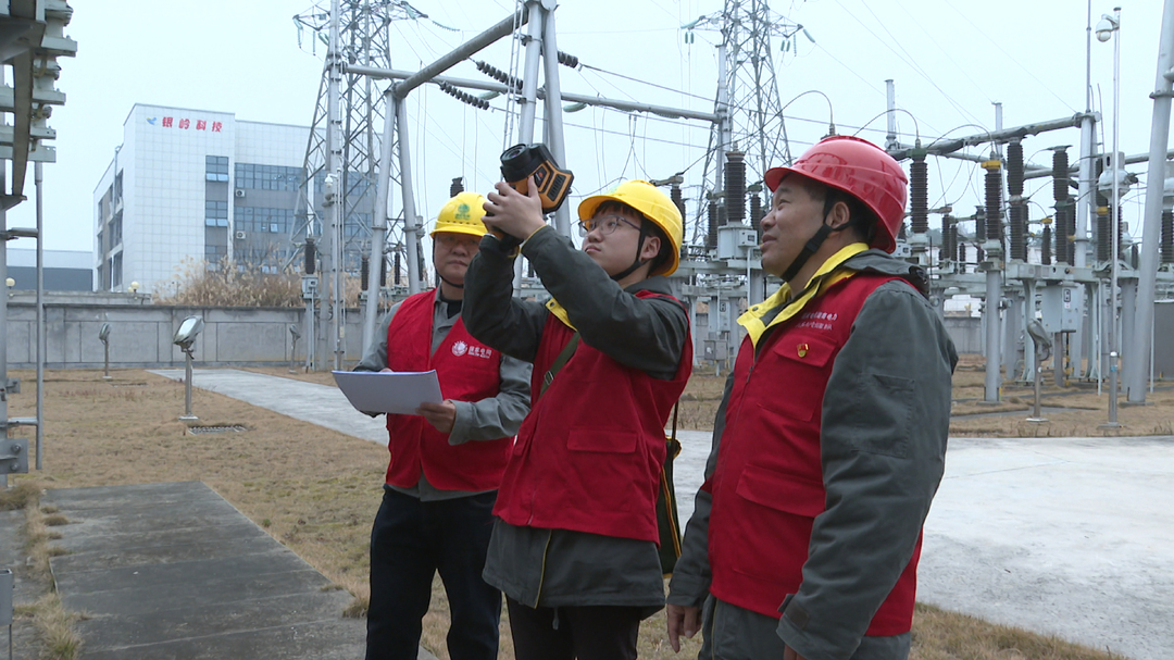 新洞口客户端1月26日讯(记者:胡海鹏 通讯员:魏艳)1月25日,国网洞口供电公司110千伏花古变电站线路设备进行巡视测温,确保电网安全稳定运行,护航群众亮亮堂堂过新年。