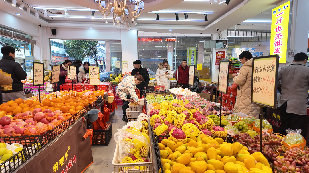 新洞口客户端1月26日讯(记者 夏晶 欧阳沐娟)春节临近,洞口的大街小巷处处洋溢着浓厚的节日氛围。在热闹的年货采购中,水果市场更是呈现出购销两旺的景象,各门店前货物丰盈,前来选购的消费者络绎不绝。