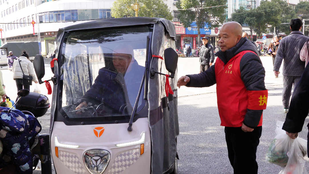 2月4日,记者在大桥百货十字路口看到,身穿红色马甲的志愿者正在对来往的车辆和人群进行交通劝导。在劝导工作中,志愿者重点对行人横穿马路,人、车闯红灯,电动三四轮非法载人,驾驶电瓶车、摩托车不戴头盔,驾乘人员不系安全带,超载、超员、酒驾等交通违规违法行为,利用“宣传+教育”的方式进行现场劝导,从源头上消除道路交通安全隐患。