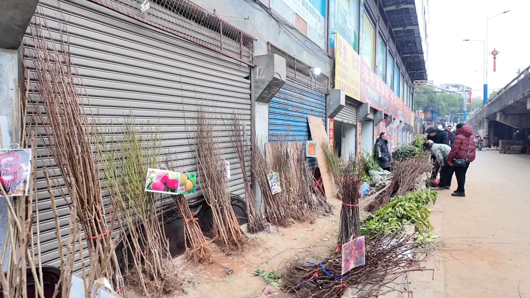 2月5日,走进县城凤凰桥下的临时苗木交易集市,记者看到街道旁摆放着成扎、成捆的树苗,柑橘、桃树、樱桃、杨梅、月季花、山茶花等花卉苗木琳琅满目,一排排、一簇簇的苗木春意浓厚、生机盎然,吸引不少市民前来挑选、购买。市民穿行其中,询问苗木价格、品种、种植方法等,苗木销售商热情地向市民介绍苗木特性及管护方法,帮助他们选择心仪的苗木。