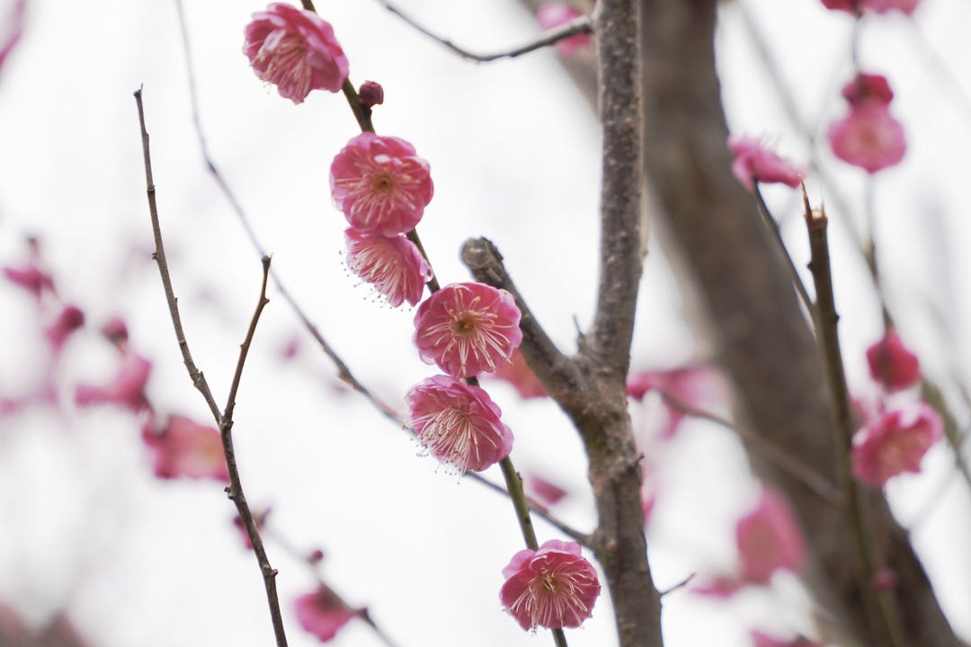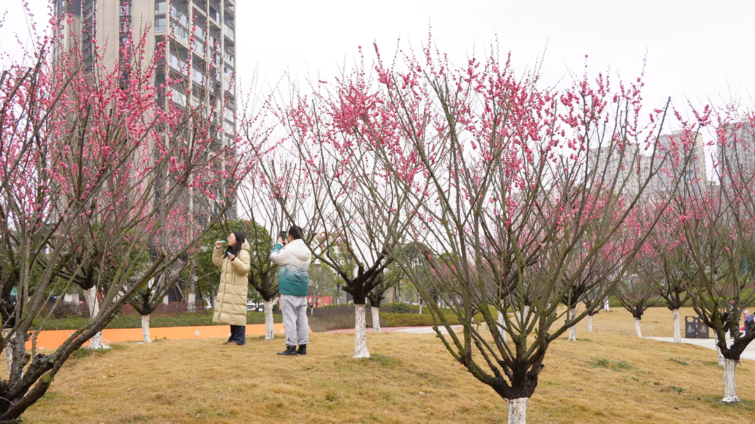 家住附近的胡女士说:“每年这个时候我都会来滨江公园,走进梅花园仿佛踏入一幅水墨画。”这里的梅花在晨曦与烟雨中各有风韵,不管是独自漫步,还是拍摄人像,都能收获满满的惊喜。