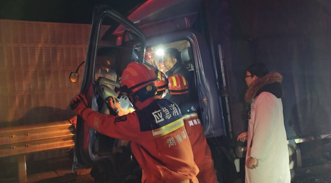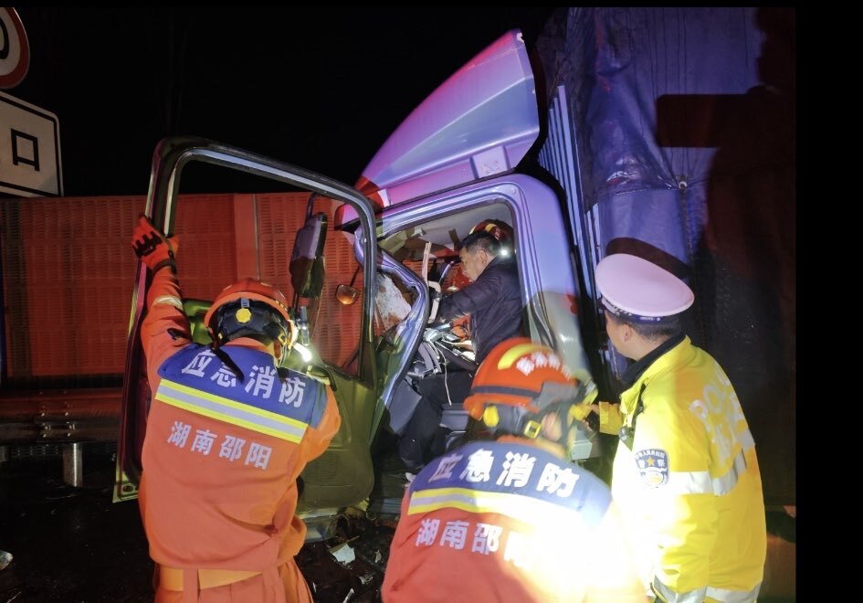 新洞口客户端2月9日讯(记者:王颖蓓 王禹 通讯员:周丽霞 陈良)2月7日凌晨,沪昆高速洞口县路段三车追尾,一人被困驾驶舱,所幸消防救援人员及时赶到,帮助被困人员成功脱困。