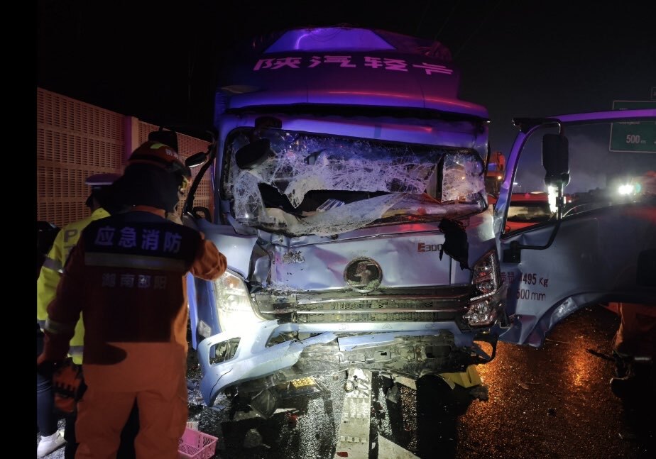 2月7日2点13分,洞口县消防救援大队指挥中心接到报警称,沪昆高速洞口服务区往黄桥方向200米处发生连环车祸,有一人被困,急需救援,接警后,洞口县消防救援大队指挥中心立即出动雪峰站2车14人前往救援。
