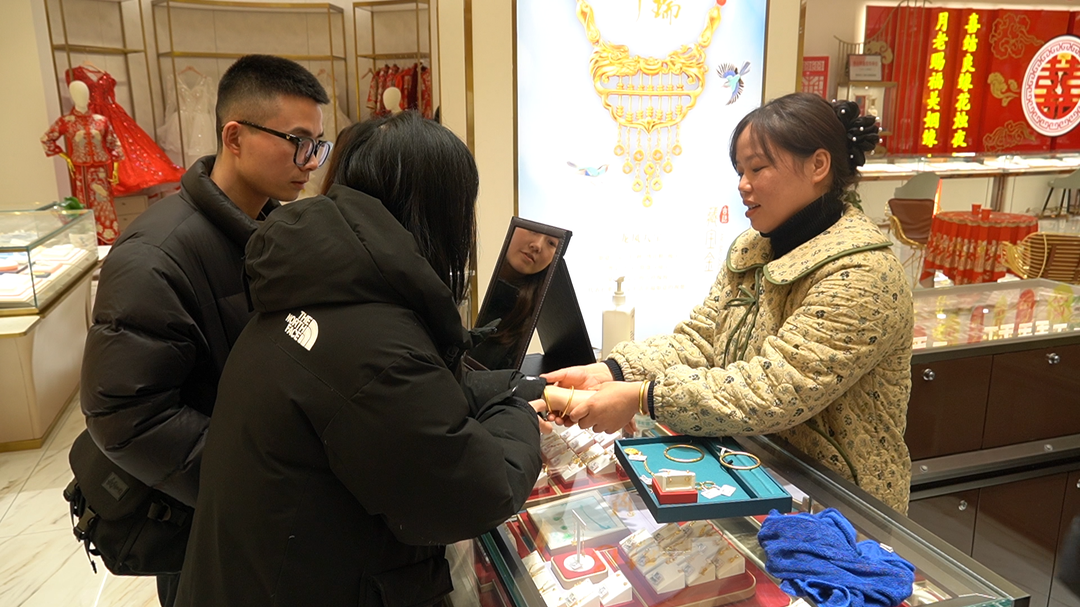 新洞口客户端2月10日讯(记者:江京晟)情人节将至,不少年轻人选择购买黄金来表达祝福和爱意,黄金销售迎来今年上半年的首个销售高峰期。