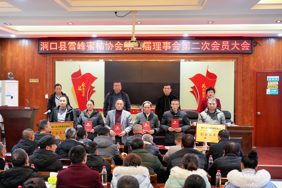 新洞口客户端2月20日讯(记者:肖皓静)2月20日,洞口县雪峰蜜桔协会总结2024年我县雪峰蜜桔产业发展成果,探讨未来发展方向。我县柑橘种植大户、合作社负责人齐聚一堂,共商发展大计,县农业农村局负责人参加会议。