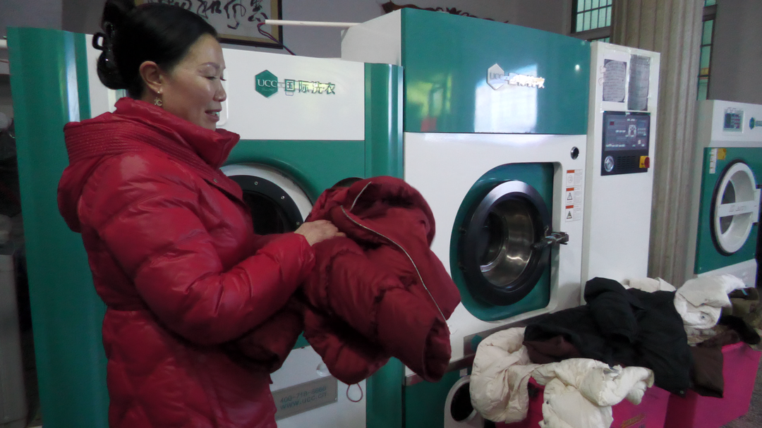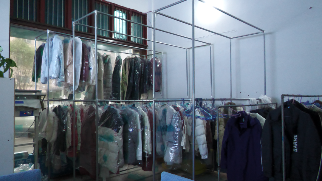 “与以往相比,最近的生意还不错。由于下雨天衣物容易被淋湿或弄脏,很多顾客会选择送到干洗店清洗。目前,店里每天平均要处理20多件衣物,羽绒服、棉衣、呢大衣啊,送洗量相对较大,此外,顾客还会送洗床罩和鞋子等物品。”干洗店店长肖女士说道。