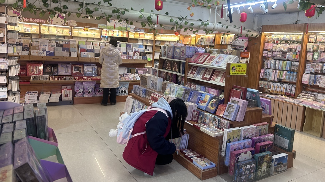 2月24日,记者在洞口县第一中学附近的学生时代书店,看到店内书包、笔记本、笔、文具盒等学习用品琳琅满目,各类教材辅导书、习题集、试卷等摆放得满满当当,不少学生和家长正在挑选心仪的学习用品。