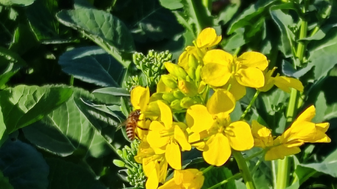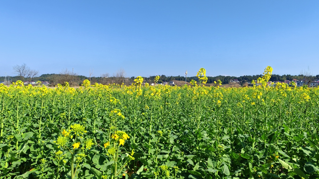 油菜花田不仅扮靓了乡村,还吸引了不少 “小访客”。成群的蜜蜂在花丛间忙碌飞舞,它们穿梭于花蕊之中,采集着花蜜,嗡嗡的振翅声为这片花海增添了灵动的音符。