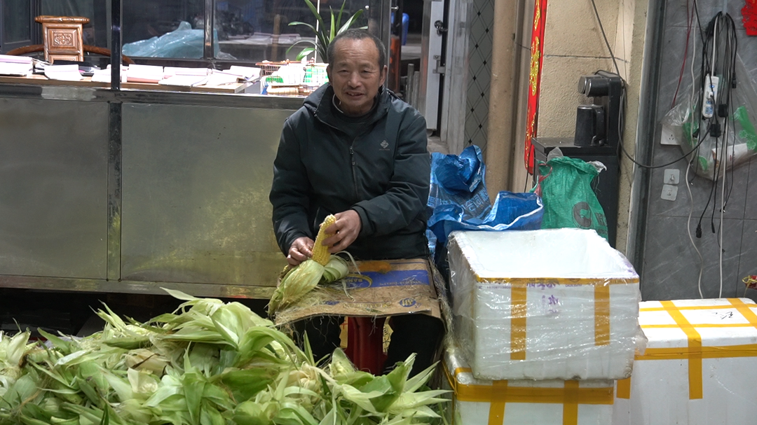 记者现场看到,菜农们早早的便来到各自的摊位,有条不紊的地摆放着待销售的时令蔬菜。销售玉米的老刘正娴熟为自家玉米进行分拣加工。只见他手指翻飞间,翠绿苞衣应声而落,颗颗金黄的玉米粒在灯光下泛着温润光泽,饱满的果穗整齐码放在筐中,静待客户挑选。