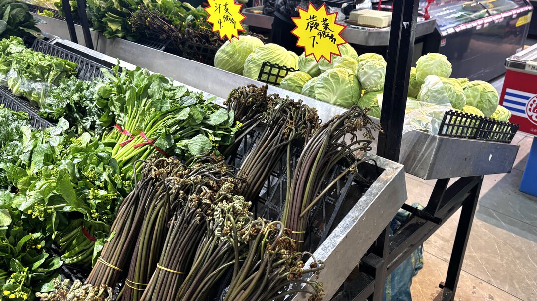 在超市的蔬菜售卖区,一捆捆鲜嫩的蕨菜摆放整齐,十分惹眼。据介绍,蕨菜适宜采摘的时间窗口非常短暂,从嫩叶初生起大约只有七天。一旦超过这个时间,蕨菜就会老化或叶片完全展开,不再适合食用。