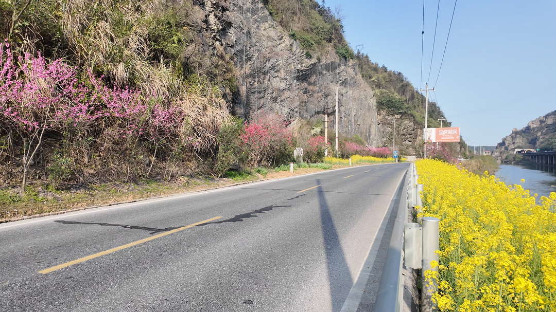 在长塘瑶族乡大公村,道路两旁金黄的油菜花海、粉嫩的桃花与远处的河流相映成趣,蜜蜂在花上忙碌地采蜜,构成了一幅充满生机的田园画卷。当地通过推进“美丽乡村”建设,不仅让村容村貌焕然一新,还为乡村发展带来了新的机遇。