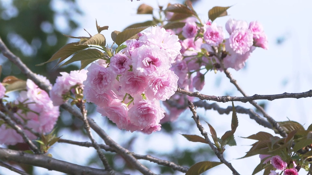 据了解,晚樱的花期较晚,一般都是花叶同放,而且都是重瓣花,花瓣很多重叠在一起。盛花期通常在四月中上旬。