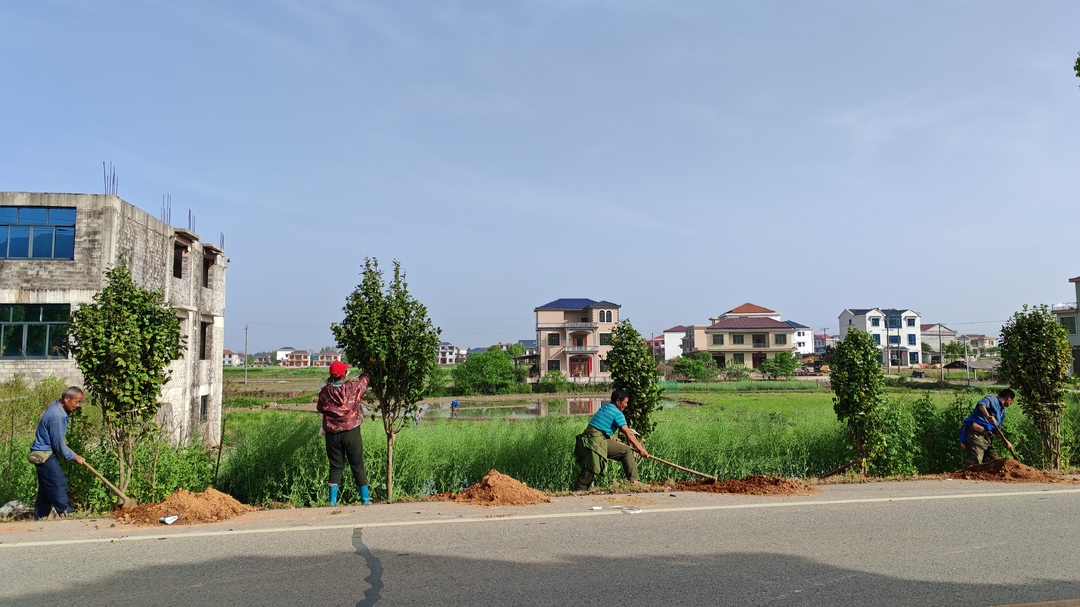 4月13日,记者驱车从毓兰镇出发,沿省道向洞口县城方向行驶,只见道路两侧新栽的茶花树整齐列队,一人高的苗木在春风中舒展新叶,与蓝天白云相映成趣,一幅"车在画中行"的和美乡村图景徐徐铺展。