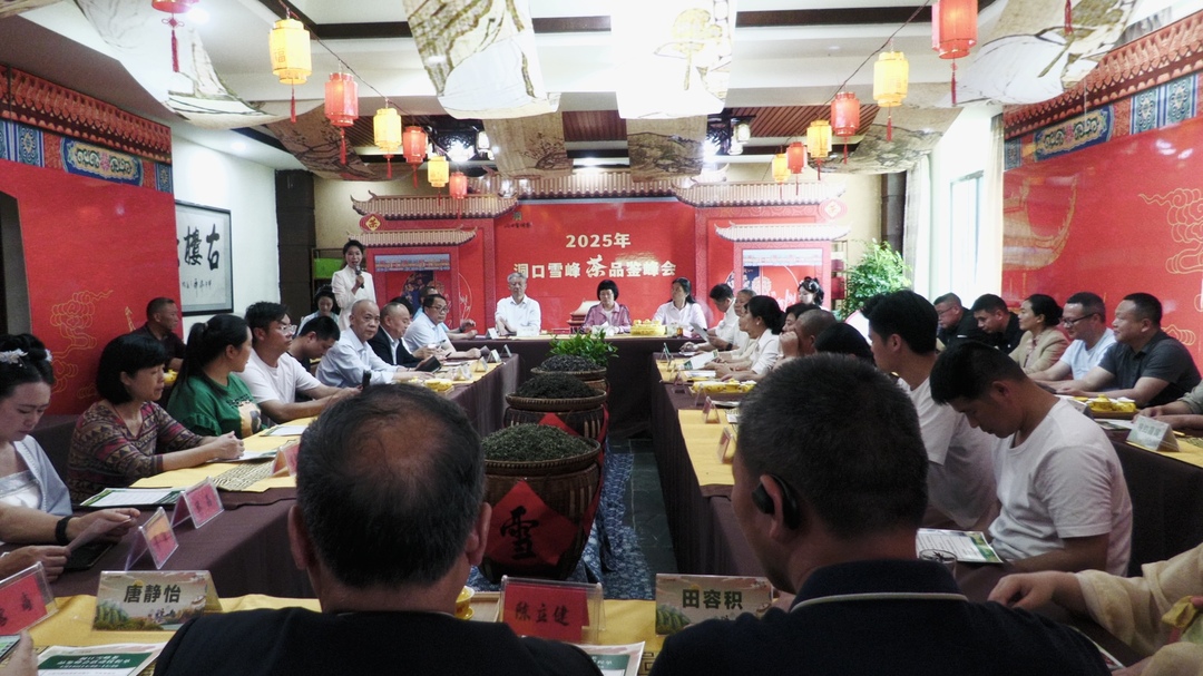 活动现场,茶香氤氲,大家在袅袅茶韵中,领略洞口雪峰茶的独特魅力与文化内涵。品鉴环节,专家们手持茶杯,凑近轻嗅,深吸茶香,随后浅尝茶汤,神情投入。大家对洞口雪峰茶绿茶、红茶、白茶以及“将军红”这4款茶品,从色泽、香气、口感等多方面进行细致品鉴。随后,多位专家从专业角度精准点评,既分析茶叶品质优势,又为后续优化提升建言献策。