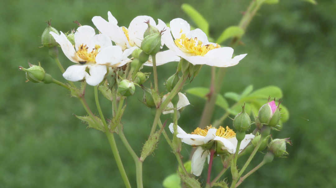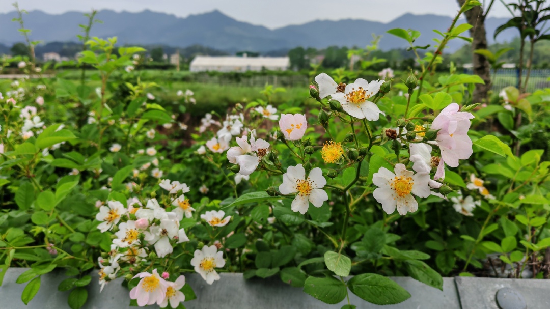 据了解,野蔷薇属蔷薇科落叶攀缘灌木,在本地又称"刺花"。其枝条具皮刺,奇数羽状复叶边缘有尖锐锯齿,伞房花序可着花数十朵,盛花期在4至6月。