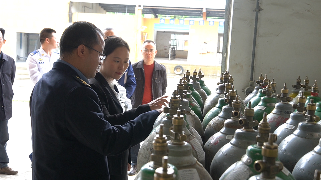 在洞口县衡邵工业气体有限公司,毛超林一行对储罐、气化器、管道、阀门等设备进行了全面检查,并详细记录了压力、流量、液位、温度等关键参数,同时对相关标识牌进行了讲解,确保操作人员清晰了解设备安全管理信息,将安全隐患消灭在萌芽状态。