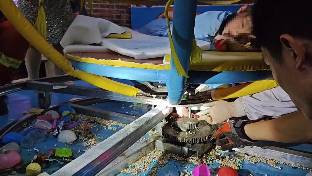 5月1日16时26分,一名女孩在乘坐“转转椅”时,不慎将玩具掉在底部洞里,女孩伸手捡玩具时由于机器一直在运转,手不慎被卡。县消防救援大队指挥中心接到报警电话后,立即出动3辆消防车21名消防救援人员火速奔赴现场救援。