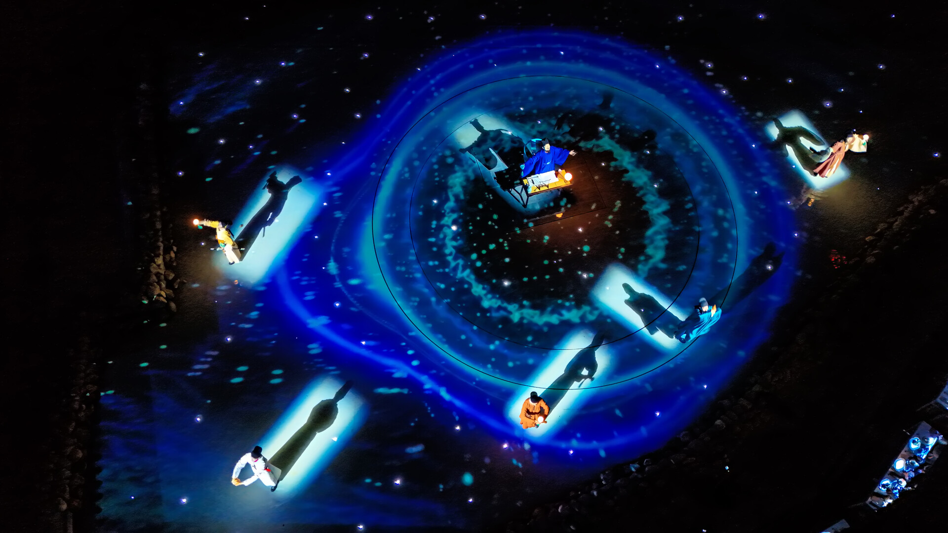 基于岳阳楼景区为国家级风景名胜区,创作团队遵循岳阳楼景区已有的园林基础与物理空间上“借景还境”,依托既有园林空间,用光影与数字技术编织虚实交融的诗意场域。先进投影技术与裸眼全息影像技术的联动,将亭台水榭化作流动画卷;多端无线数控技术与多媒体视觉矩阵的充分结合,为观众带来极具内容输出的光影新表达,从而体验一个虚实交换、可坐、可看、可游走、可互动的穿越式诗境剧场。