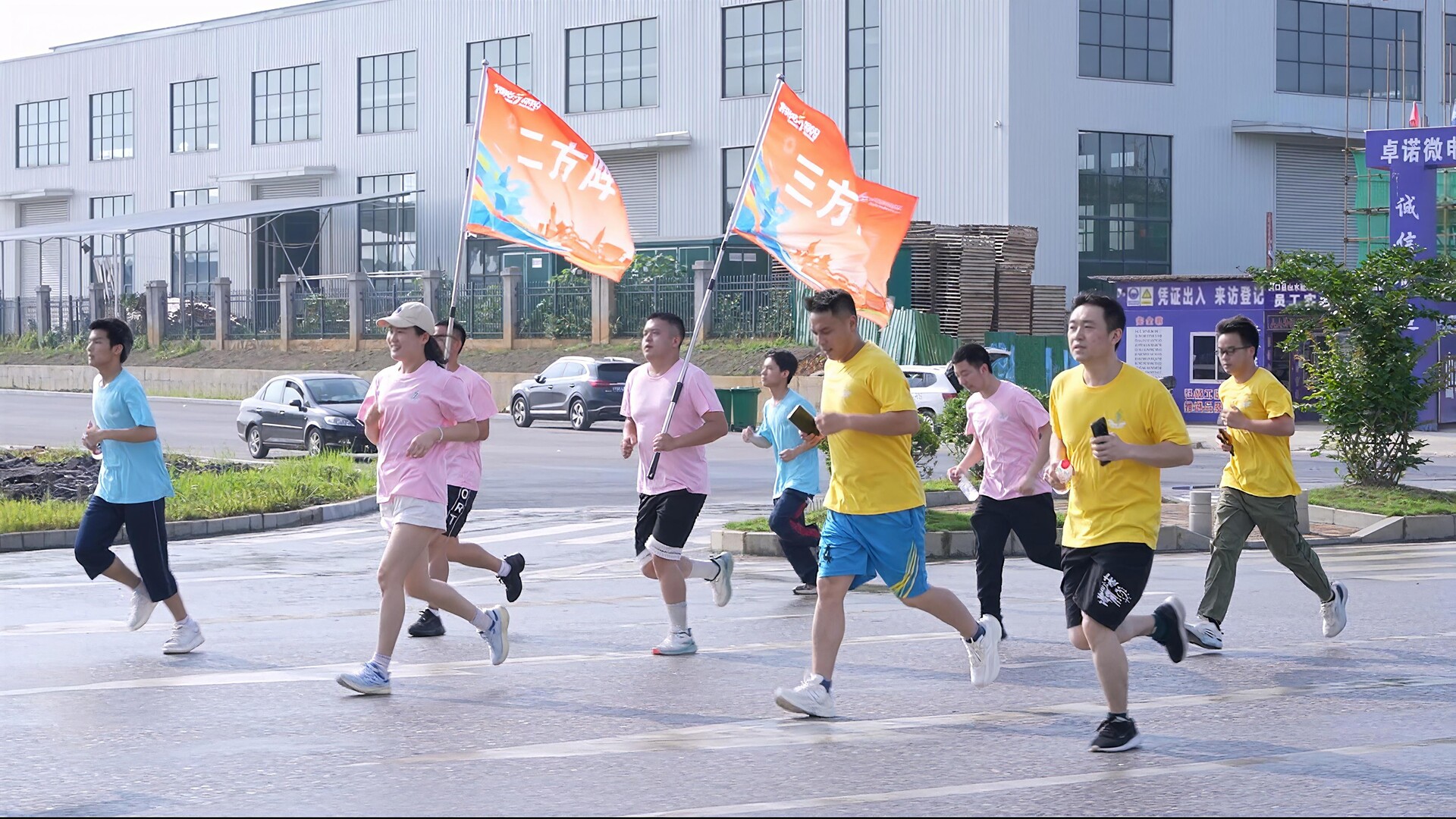 上午8时30分,随着发令枪响,跑团从装备制造产业园出发,沿聚福路产业主轴开启3.5公里的沉浸式体验之旅。选手们途经卓诺科技园、康富泰医疗器械、阳雪新材料等标杆企业,并在纽恩驰新能源公司完成折返。