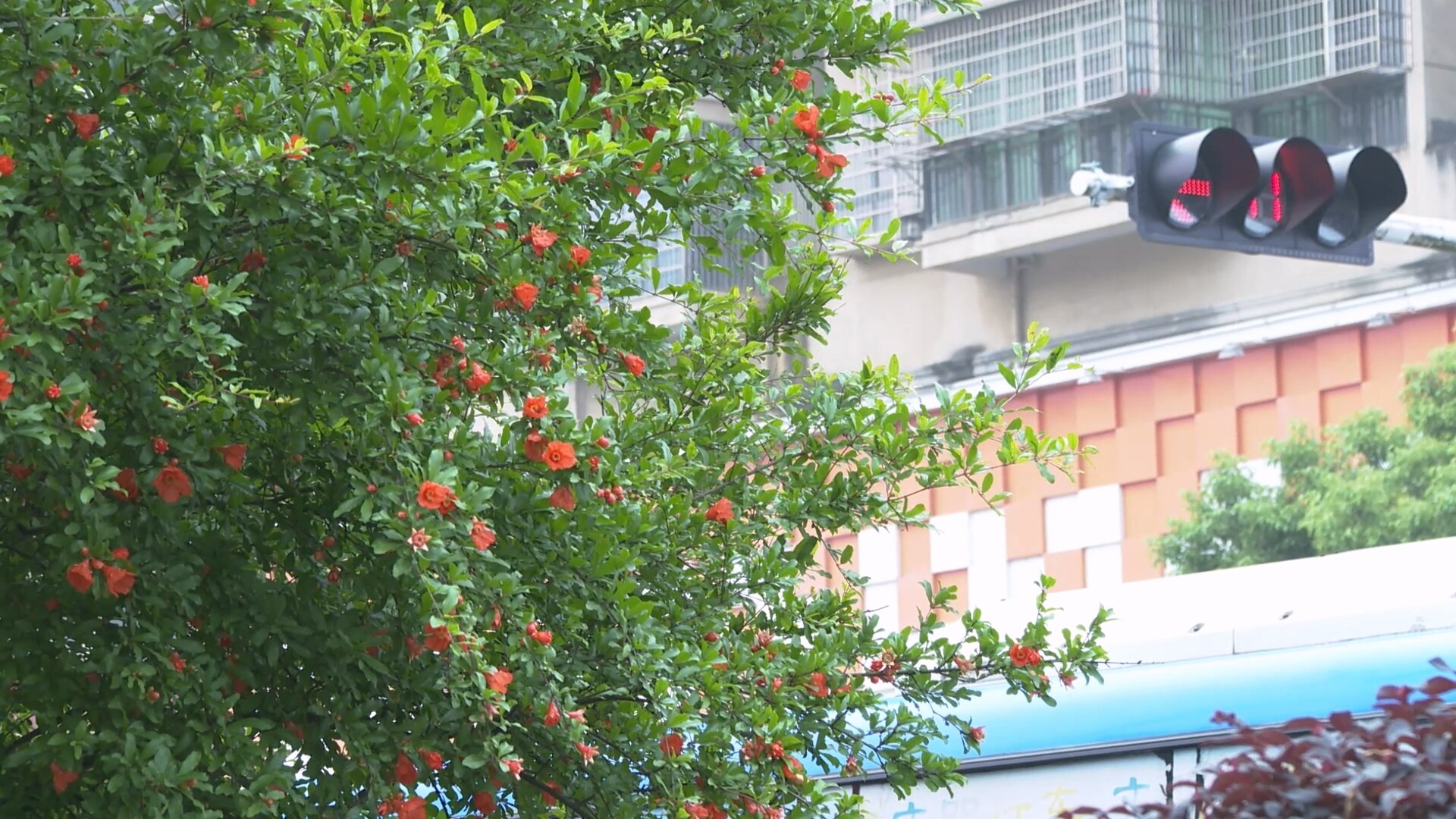火红的石榴花,如同无数颗跳动的火苗,在绿叶的映衬下格外鲜艳夺目。它们或独自绽放,或簇拥成团,竞相展示着美丽与热情。空气中弥漫着沁人心脾的花香,吸引不少市民驻足观赏。