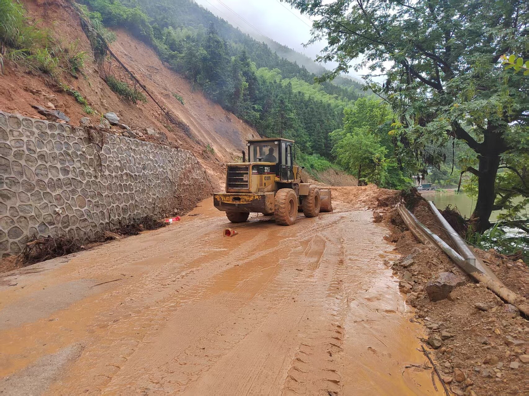 洞口融媒5月28日讯(记者:胡海鹏 曾林吉 通讯员 肖晴蕾受持续强降雨影响,5月28日凌晨3点左右,长塘瑶族乡发生山体滑坡,大量泥土滑落至通乡公路,导致交通中断。险情发生后,该乡党员干部迅速响应,第一时间赶赴现场勘察,并调集推土机等设备,采取机械与人工结合的方式全力抢修。经过2个小时的紧张施工,道路恢复通行,及时保障了群众出行安全。