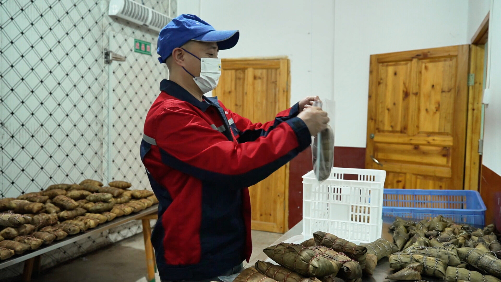 “我们做的粽子的原材料,米、叶子都是我们自己山上种的, 包括我们用的碱水,都是自己用稻草做的。”肖和强介绍,今年是他做粽子售卖的第8年,每年端午节前后半月时间都是粽子销售旺季,客户大多是回头客,平时一天能卖1000至2000个,这段时间每天能卖3000多个。今年又推出乌饭粽、咸鸭蛋粽、腊肉粽等新品种,市场供不应求。