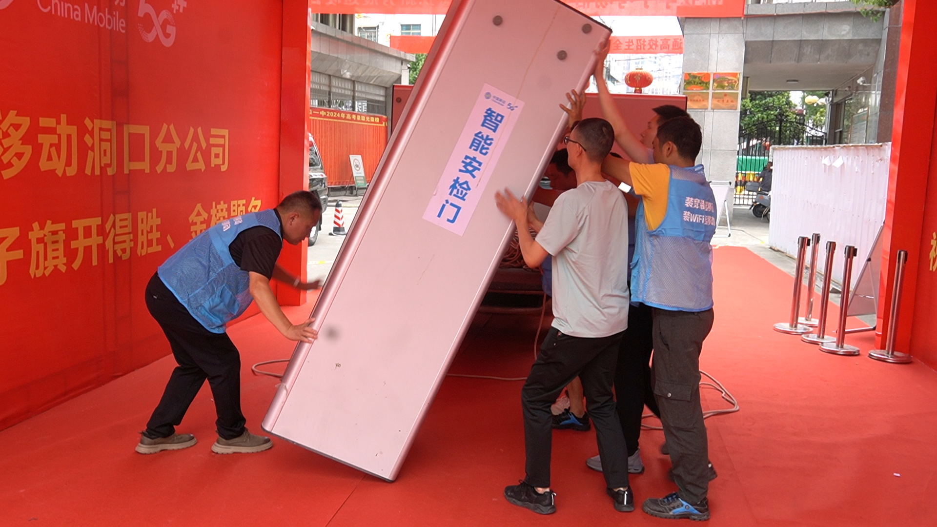 洞口融媒6月5日讯(记者:江京晟 通讯员:黄志刚)6月5日,湖南移动洞口分公司抽调多名技术骨干为洞口县第一中学南校区、北校区等高考考点安装智慧安检门,全力以赴做好高考保障工作,为广大考生创造良好的考试环境。