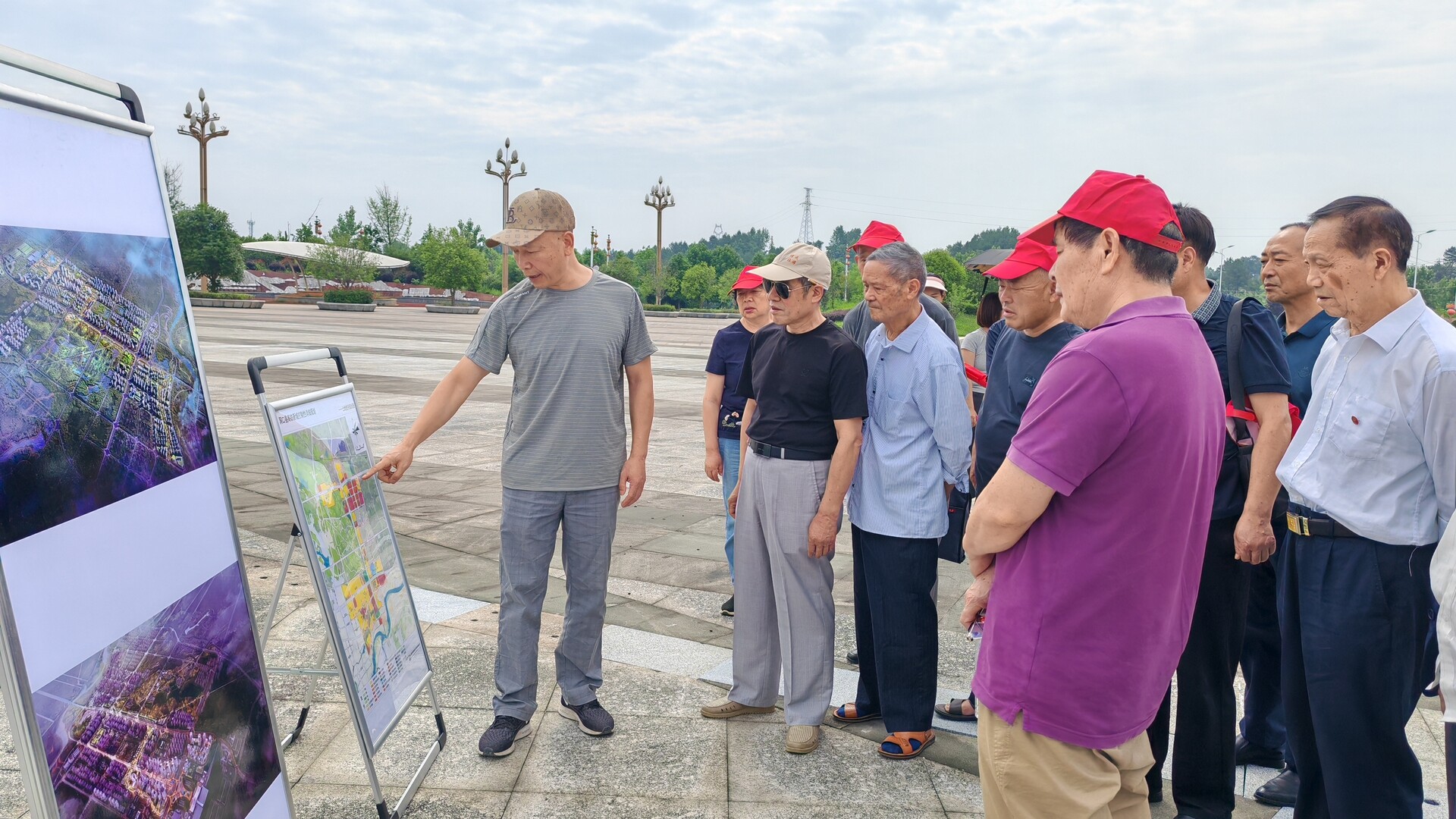 在高铁新城区,戴伟建结合展板和现场实景详细介绍了高铁新城区的建设和规划,离退休干部们认真聆听,不时提出关于项目建设周期、产业招商方向等问题,戴伟建逐一解答,现场氛围热烈。