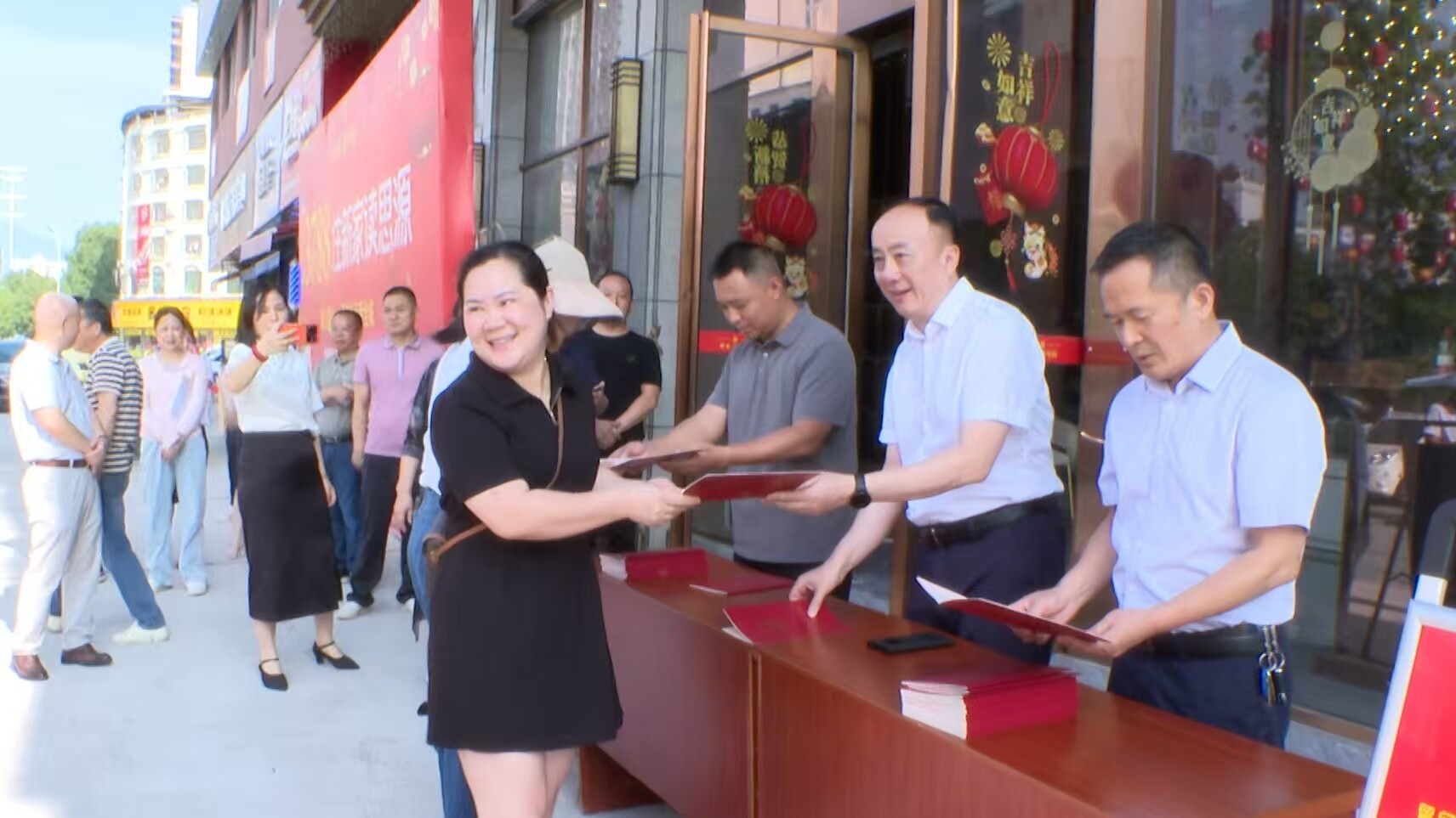 洞口融媒6月7日讯(记者:林巍浩)6月6日,县房地产领域办证工作专班举办“坤龙宏源”项目送证上门服务活动,将该楼盘按照化解房地产办证问题“三先三后”“证缴分离”原则办理的66本《不动产权证书》送到群众家门口,让县委、县政府解决人民群众“办证难”遗留问题既有规范高效的“硬度”,更有温暖人心的“温度”,践行为民办实事的服务初心。副县长杨国荣,县政协副主席尹琪峰出席活动。
